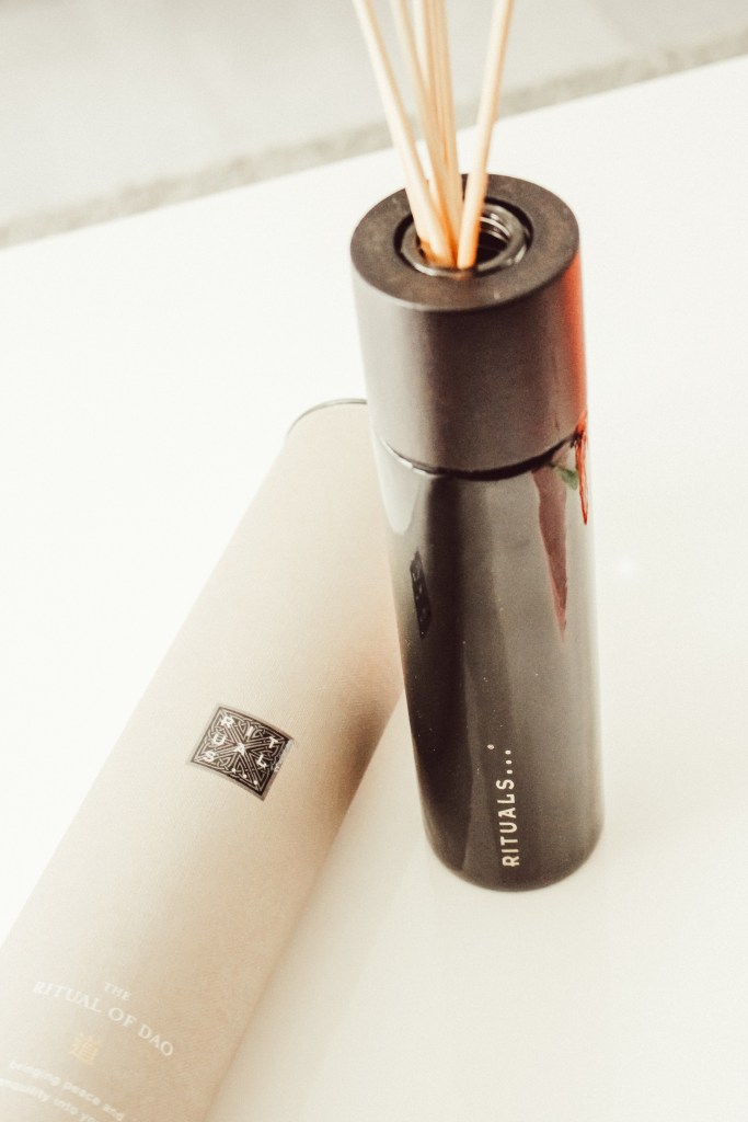 Vor kurzem habe ich bei Douglas einen neuen Raumduft entdeckt. Also der Klassiker: Duftöl mit Holzstäbchen. Diesmal war es das neue Design von „The Ritual of Karma“ welches mich überzeugt hat. Die Verpackung ist eine total lange Kartonröhre. In dieser steckt eine Glasflasche mit dem Duftöl und den dazugehörigen langen Holzstäbchen. Also in dieser Größe (ca. 40 cm höhe) habe ich diese Duftöle noch nie gesehen. Wem das zu groß ist kann natürlich auch das mini Format nehmen.